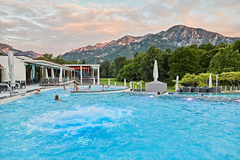 - 2 – 4 %ige und 34 – 40 °C wohlige AlpenSole in Innen- und Außenpools